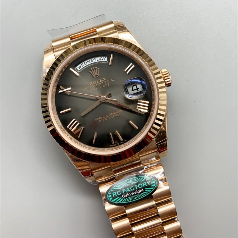 Weight-balanced DD – Ceiling-level “Rolex DD Day-Date” PPM. The bracelet color, dial color, watch weight, and thickness are all based on genuine original molds, redefining the weight-balanced version of the DD replica. The bracelet contains ceramic tubes, interchangeable with the genuine product. This is not a compromise replica, but a complete超越 (transcendence) in materials and craftsmanship! Rejecting “market common goods,” every gram of weight (precisely 209g-212g) and every millimeter of thickness fights for the dignity of the original.