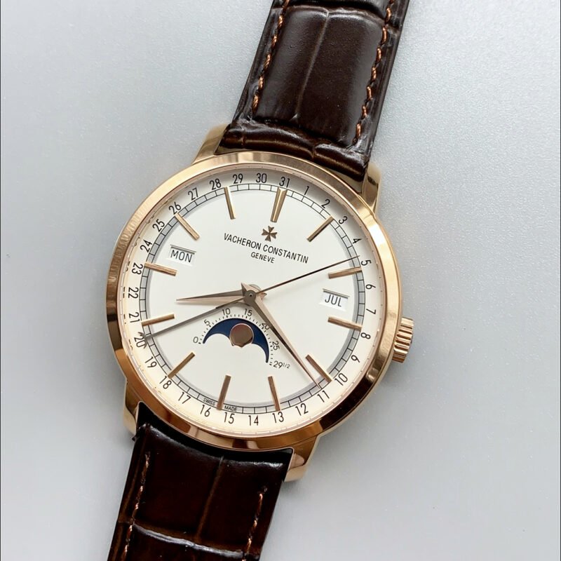 Vacheron Constantin Traditionelle Complete Calendar Rose Gold Plating White Dial (1:1Super Clone)