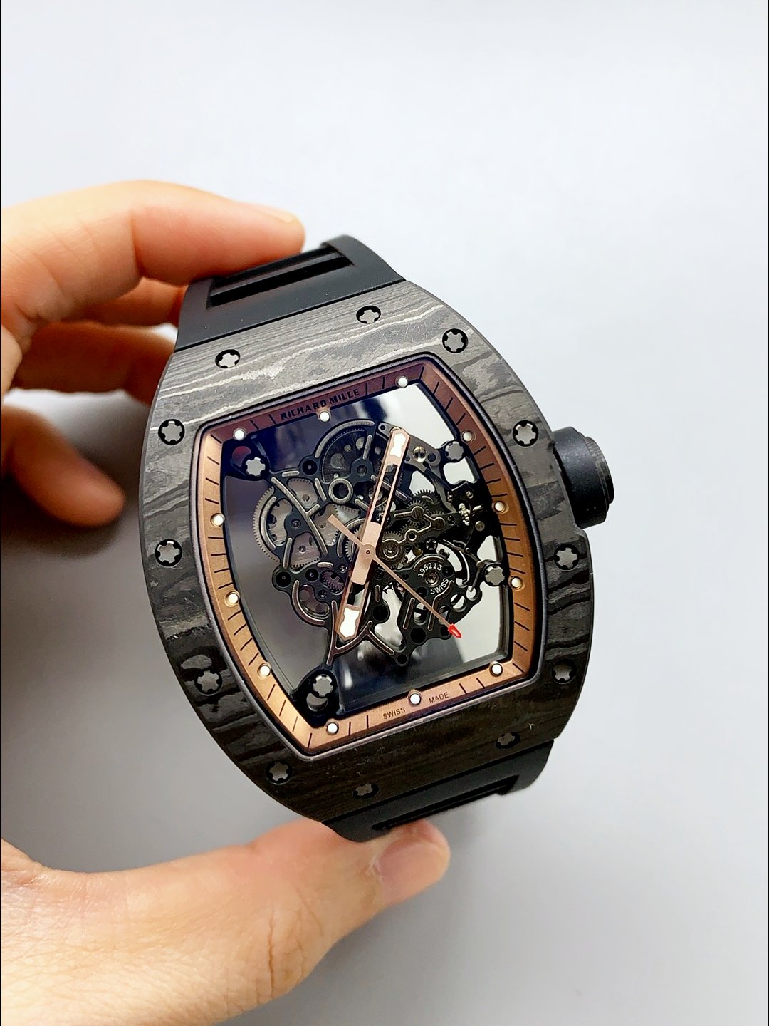 The new APS RM055 is now available in limited quantities, the highest version on the market. Richard Mille focuses on lightweight and fashionable design. All our metal parts are made of titanium, synchronized with the original (all visible and invisible metal parts are titanium). As an entry ticket for billionaires, we use a custom-made integrated RMUL2 movement from Dandong, currently the highest version of the movement on the market, along with the case, strap, and all accessories.