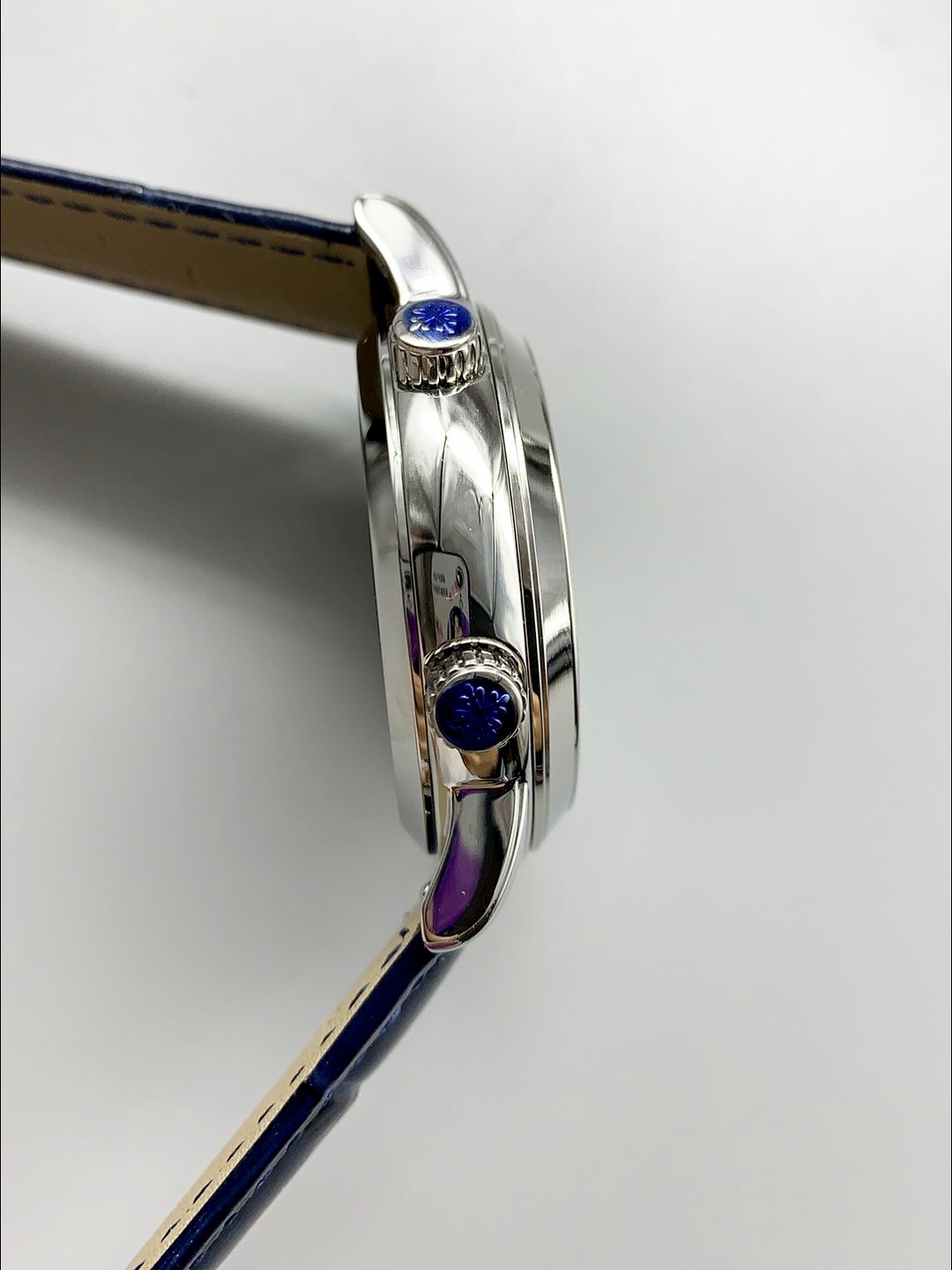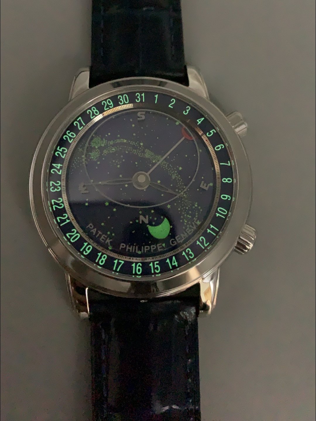 Date is Adjusted through the Crown at 2 O’Clock, MoonPhase is adjust via the crown at 4 O’Clock (MoonPhase is a Night/Day Indicator and not the Actual MoonPhase found in Original Patek Philippe 6120P Watches)