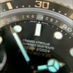 Black Dial with Super-Luminova appied to Hands, Hour Markers and Bezel Pearl. Dial Font is Crisp and is now on Par with the Originals Single Red Sea-Dweller Marking on Dial