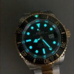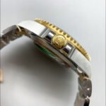 18K 10 Microns Thick Two Tone Gold Plating on 904LL Stainless Steel Oyster Bracelet with Brushed Finish and new design Diver’s Extension. Bracelet’s been updated with Ball Bearings in Ceramic in Latch Mechanism and Buckle has been updated with much better Finishing and Crisp Markings.