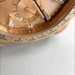 The three chronograph sub-dials on the dial are cleverly designed to complement the rose gold, enhancing the overall aesthetics. In addition, the watch features a scratch-resistant sapphire crystal, ensuring clear readability in all environments.