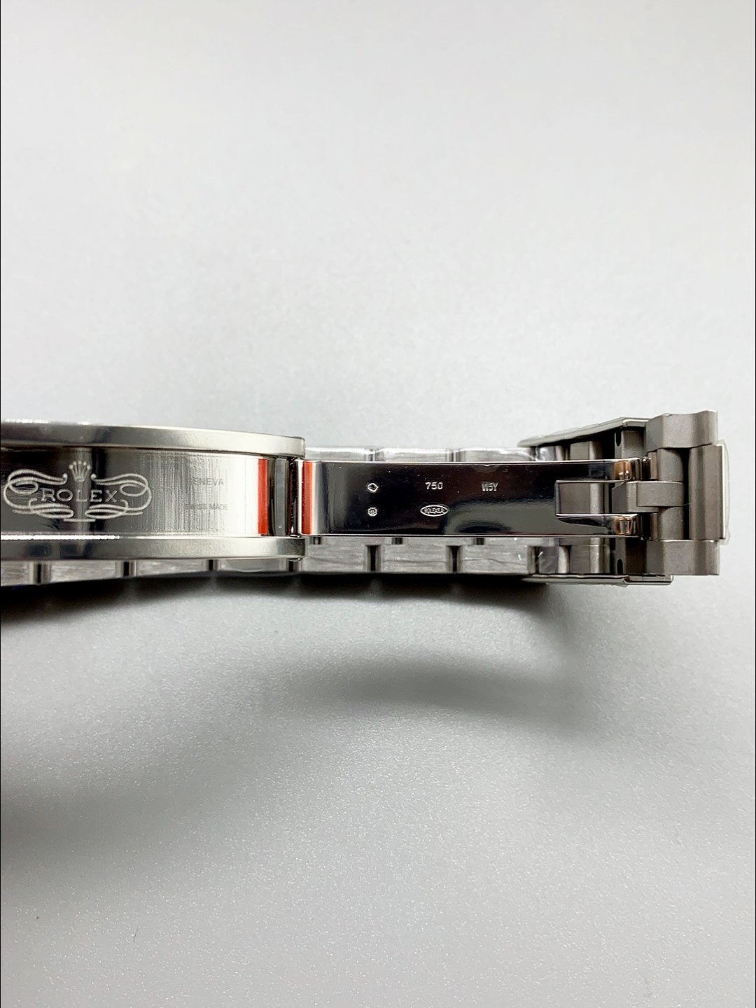 904 solid stainless steel case with the same Rolex logo and engravings as the original.