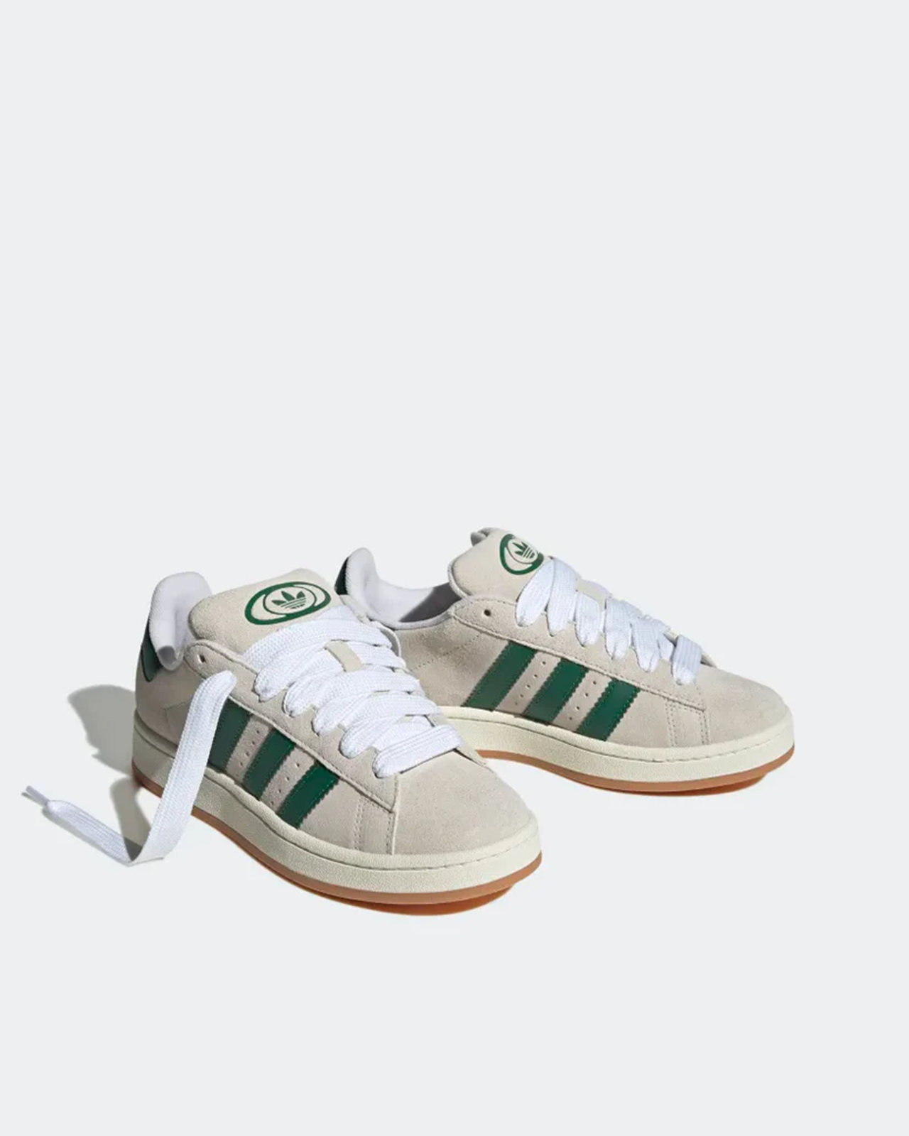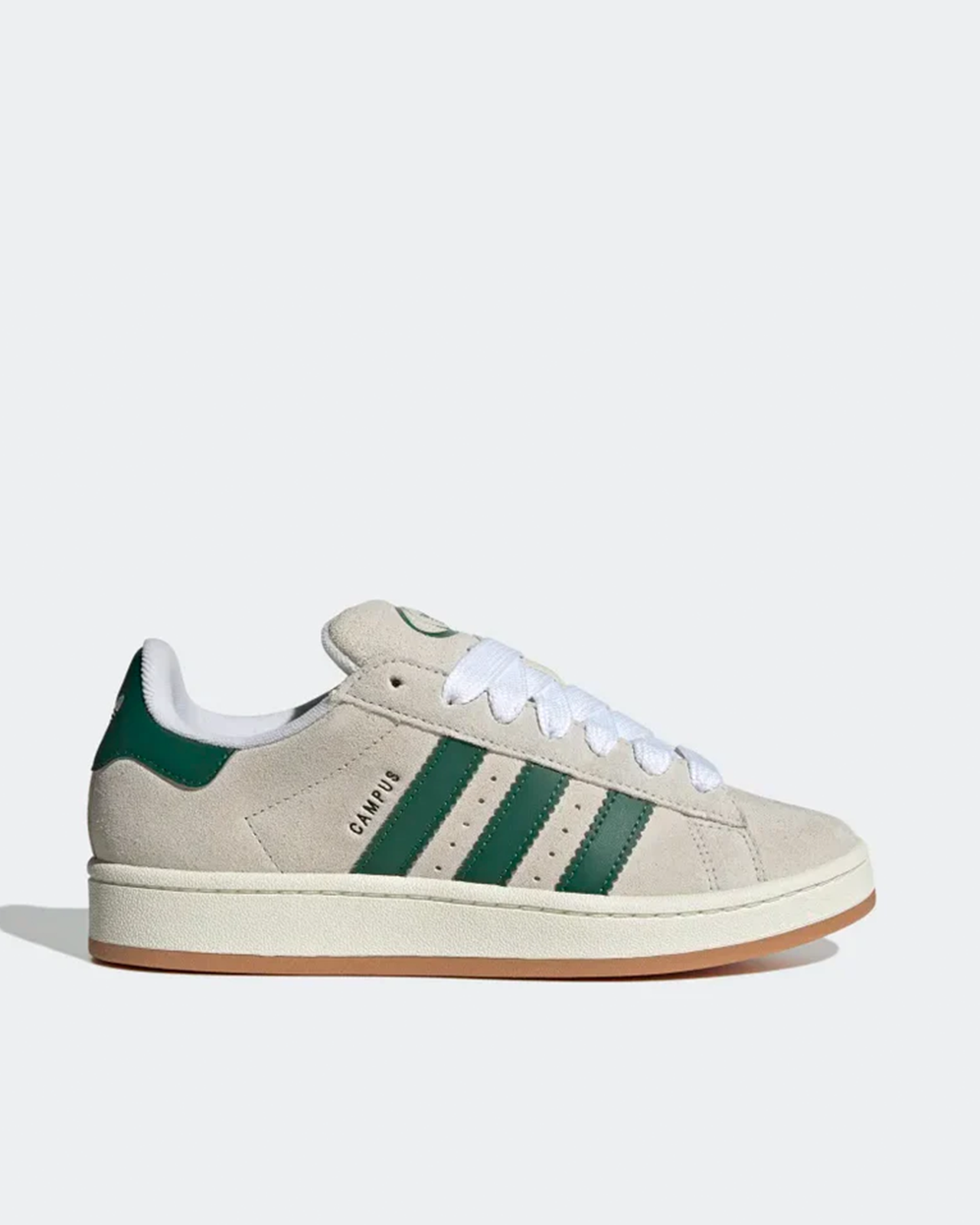 The Adidas Campus 00s Crystal White Dark Green brings a refreshed twist to the classic Campus silhouette. Featuring a clean, crystal white leather upper with contrasting dark green accents, these sneakers showcase a retro-inspired look with modern updates. The soft suede overlays and classic adidas 3-Stripes deliver a timeless design, while the durable rubber sole ensures all-day comfort and traction. A must-have for sneaker collectors and style enthusiasts alike.