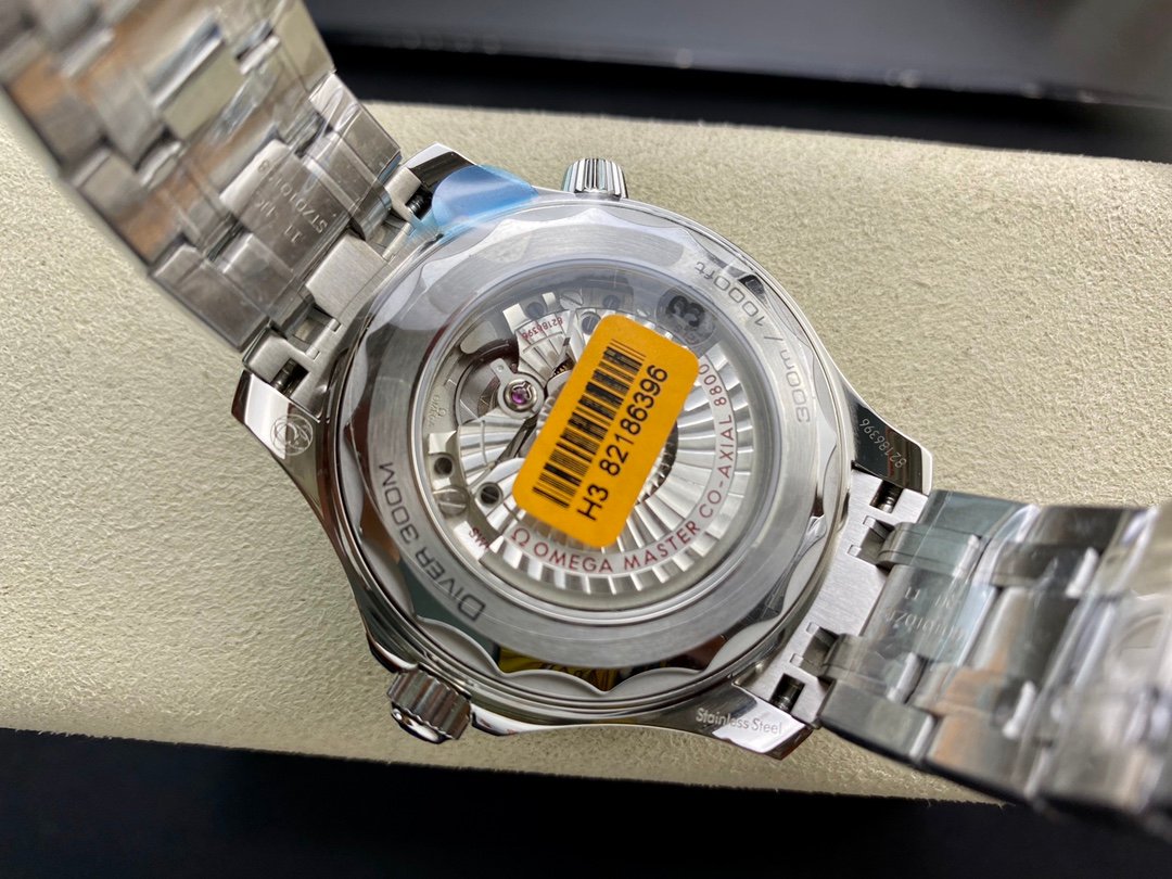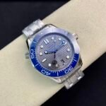 OMEGA Seamaster Diver 300M 42mm Silver Dial & Blue Bezel is a high-quality 1:1 Superclone watch that is very close to the original. It has a 42mm stainless steel case. a blue ceramic bezel. a silver dial with wave pattern. and a date window at 6 o'clock. The watch is powered by a Swiss Eta automatic movement that is decorated to look like the Omega Co-Axial Master Chronometer movement. The watch also has a sapphire crystal and a water resistance of 300 meters.