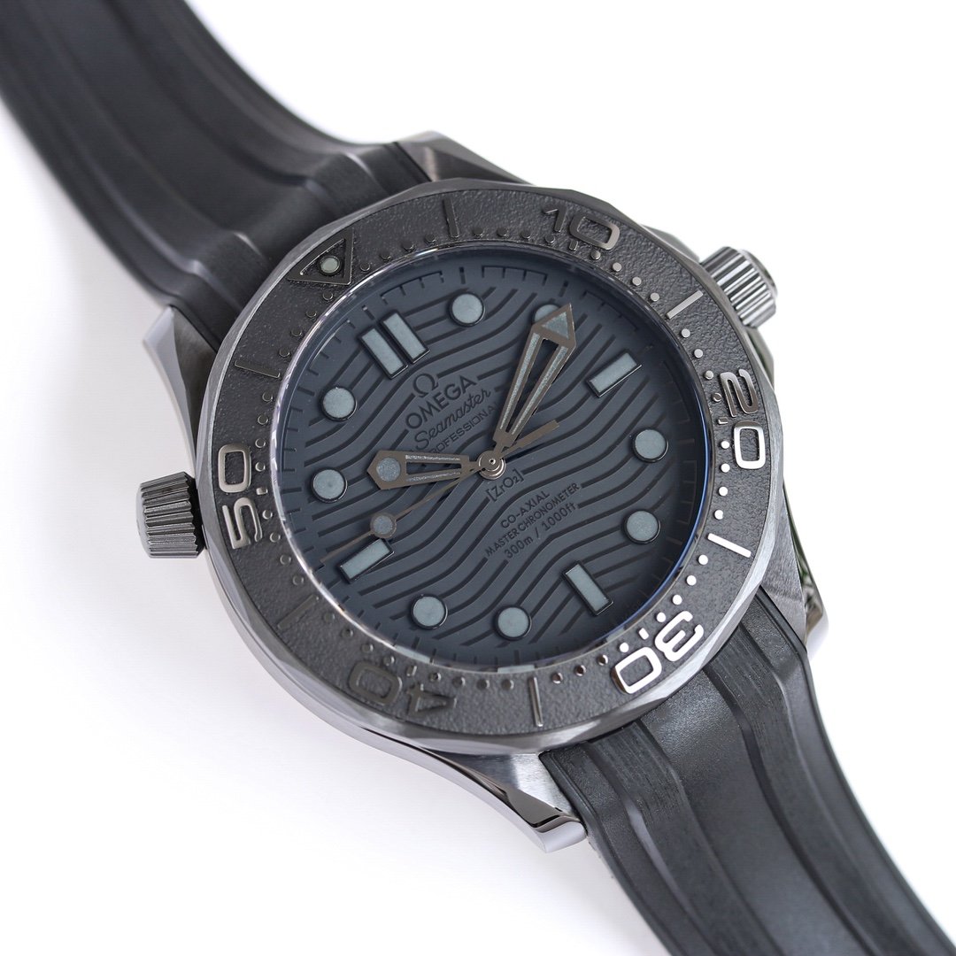 Omega Seamaster Diver 300M Ceramic Black Co-Axial watch has the reference number 210.30.42.20.01.001. It is a 1:1 Superclone watch that is made to closely resemble the original Omega Seamaster Diver 300M. The watch has a 42mm stainless steel case with a black ceramic bezel and a black ceramic dial. The hands and indices are coated with SuperLuminova for visibility in low light conditions. The watch is powered by the VS Factory's version of the Omega Co-Axial Master Chronometer Calibre 8800 movement. This movement is automatic and has a power reserve of 55 hours.