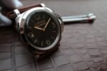 Genuine Leather Strap equipped with Stainless Steel V Buckle with Panerai Markings/Engravings. Flush Lug Screws