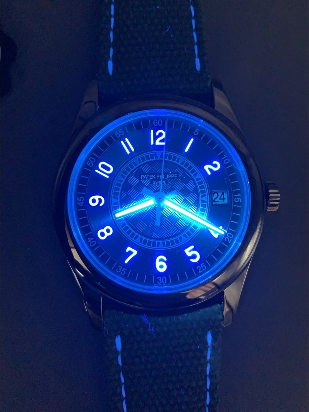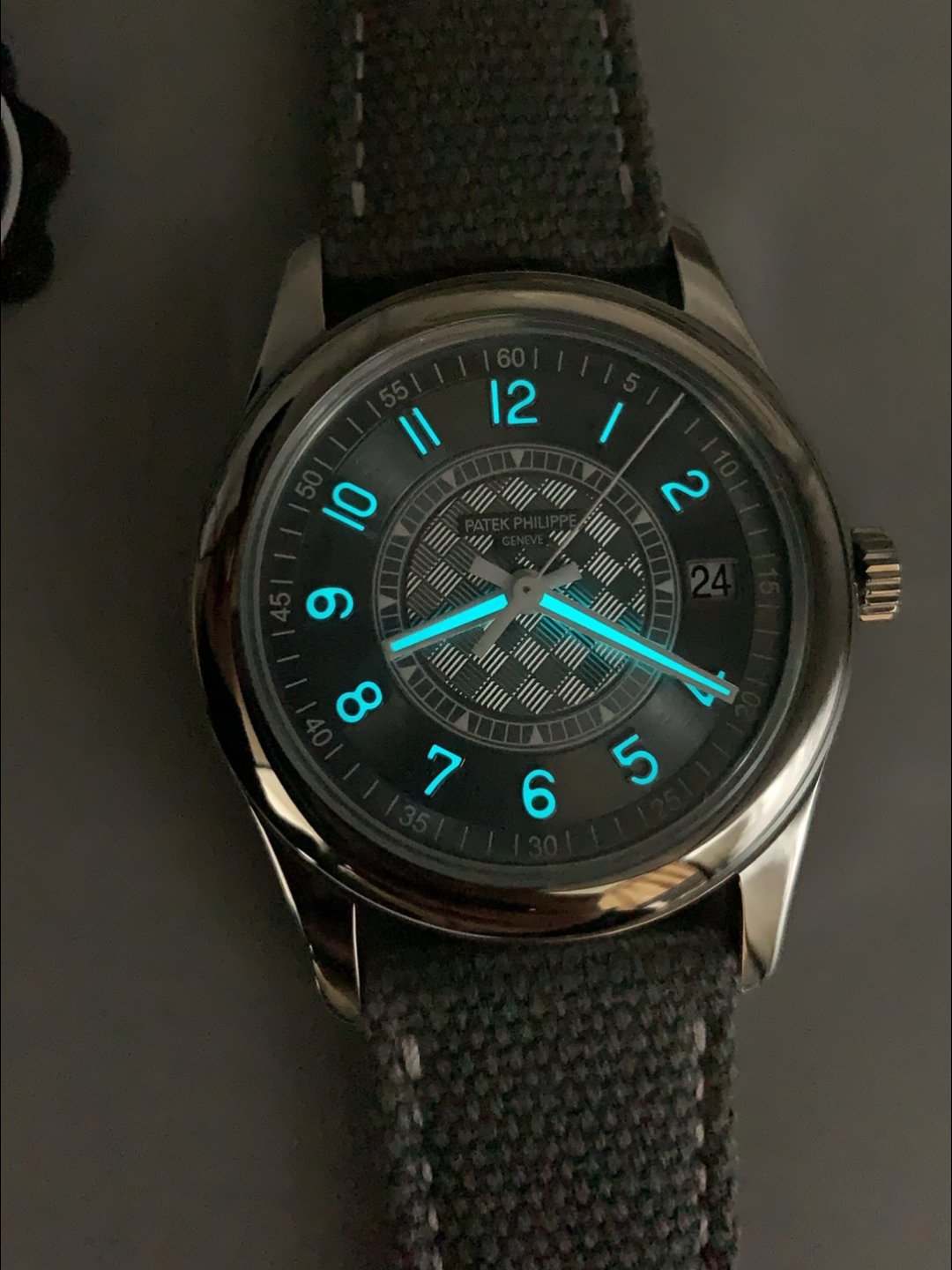 Genuine Canvas/Leather Hybrid Strap with Tang Buckle complete with Patek Philippe Markings and Engravings