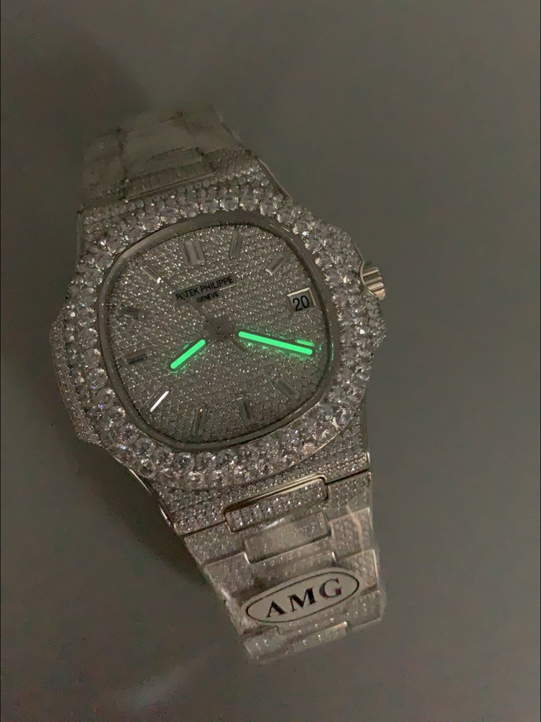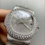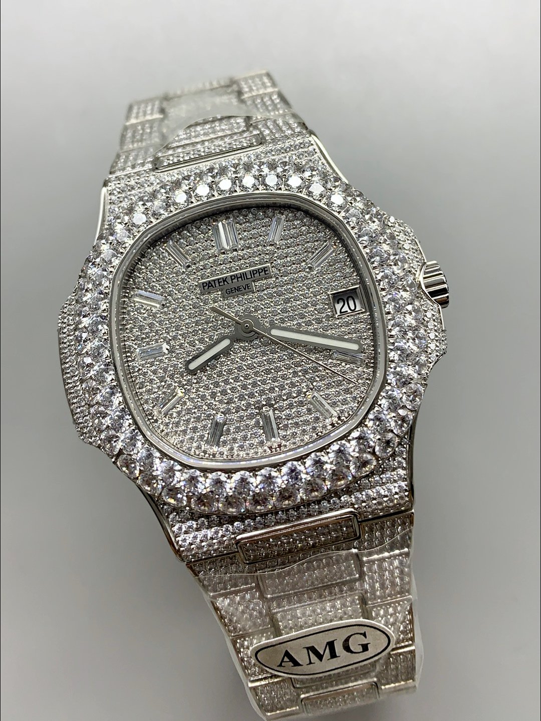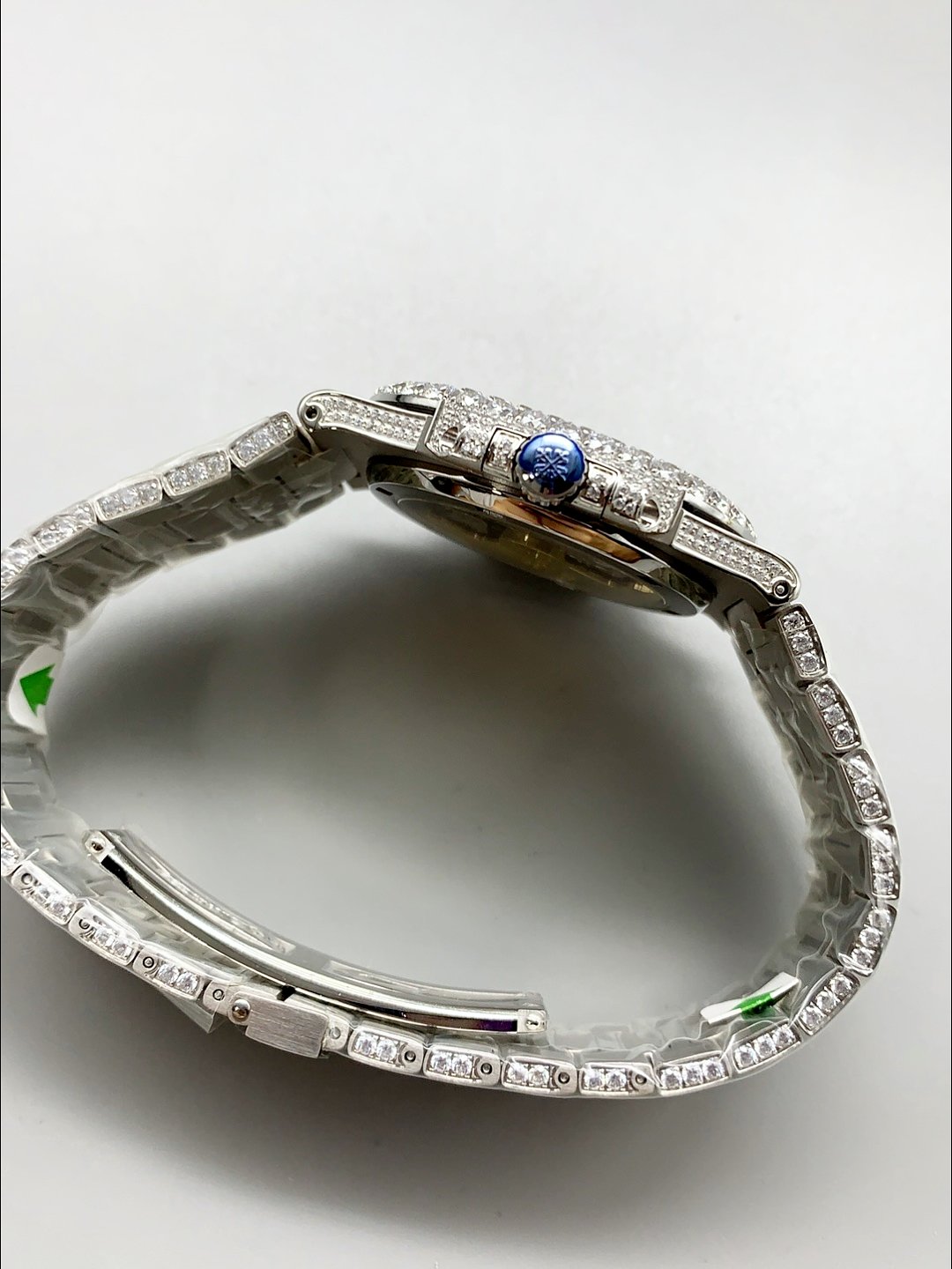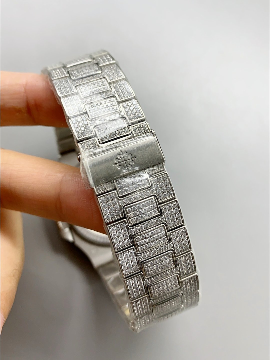 Diamonds Encrusted on 904L Steel Strap with Folding Patek Philippe Clasp complete with Patek Philippe Markings/Engravings