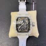 2: The upper and lower literal shock absorbers replace the original red shock absorbers with specially imported white shock absorbers from Switzerland. 3: All series using the original synchronous mold buckle (ming in the market with the same product) 4: The real mouth material of the oak table theory is that the more the feel is added. the Logo part has been 100% the same as the original. 5: Thanks to the density and hardness of the carbon indent material. the RM35-01 all upgraded watches are 100% waterproof.