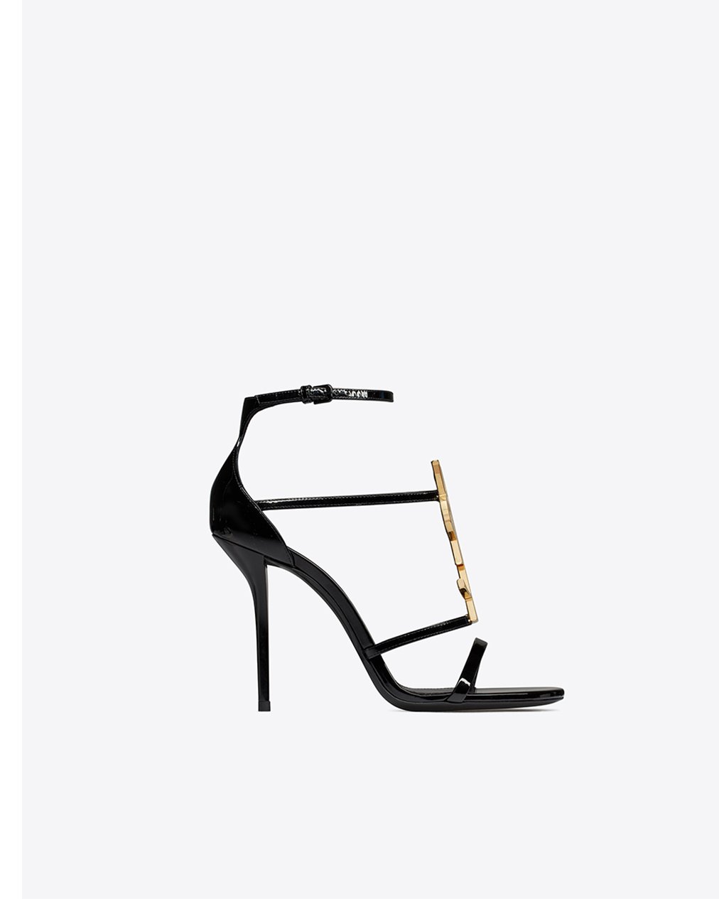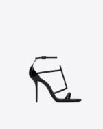 Embrace elegance with the Saint Laurent Open-Toe Sandals, designed with a striking stiletto heel and thin straps for a refined look. Made from high-quality cow leather and featuring a sturdy leather sole, these sandals are as comfortable as they are stylish. The adjustable ankle strap provides a perfect fit, while the YSL letter logo adds a hint of sophistication. With a total heel height of 10 cm (3.9 inches), they are ideal for enhancing your ensemble with a touch of luxury.